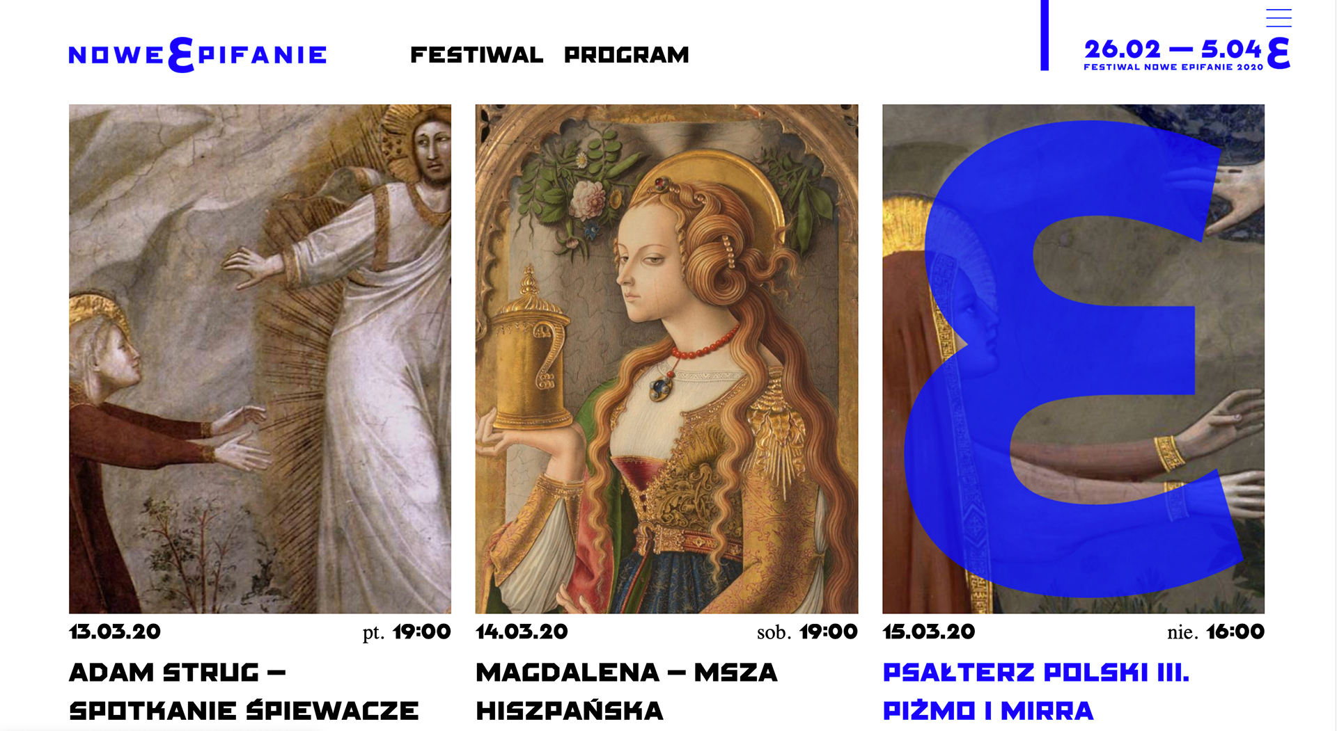 Visual Identity of Nowe Epifanie (New Epiphany) Festival by Dawid Zalesky. Font Chaim and Aviva in use.
